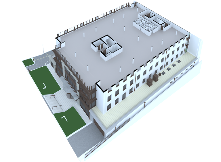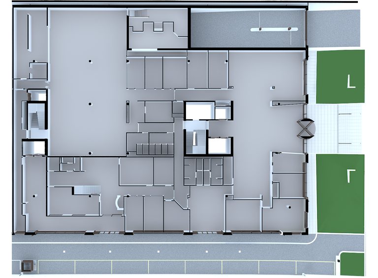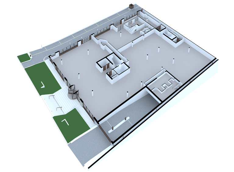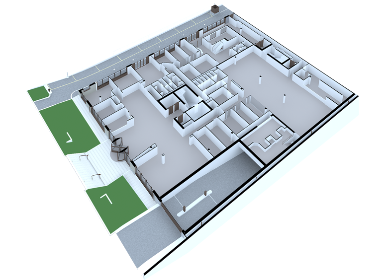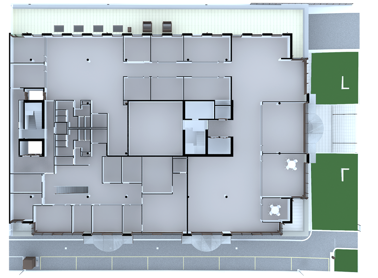 Building design maximises productivity and floor space use. As a result, each floor can receive up to 165 fulltime employee work stations, plus conference rooms, kitchen, etc. surface of approx. 1'350 sqm GEA.